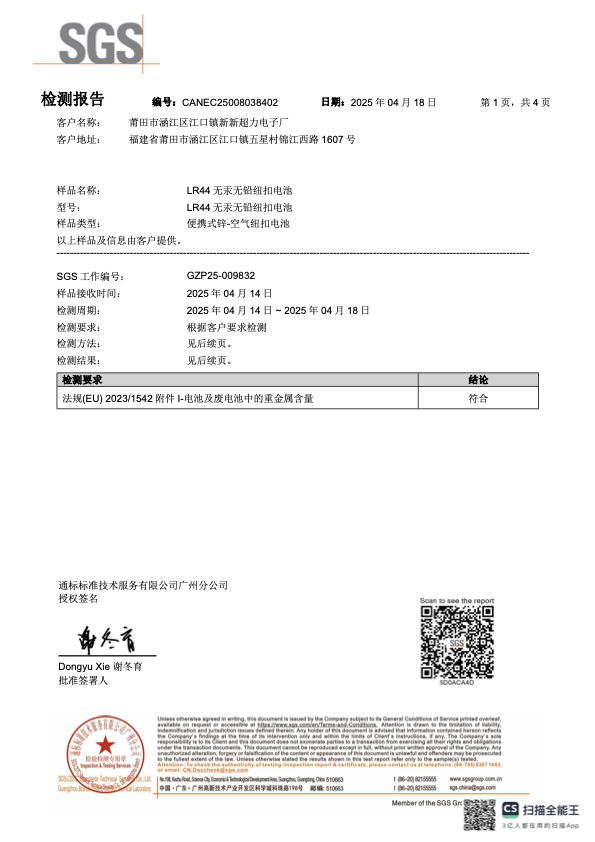 本报告为产品通过2025年欧盟相关法规与安全标准的中文版认证文件。